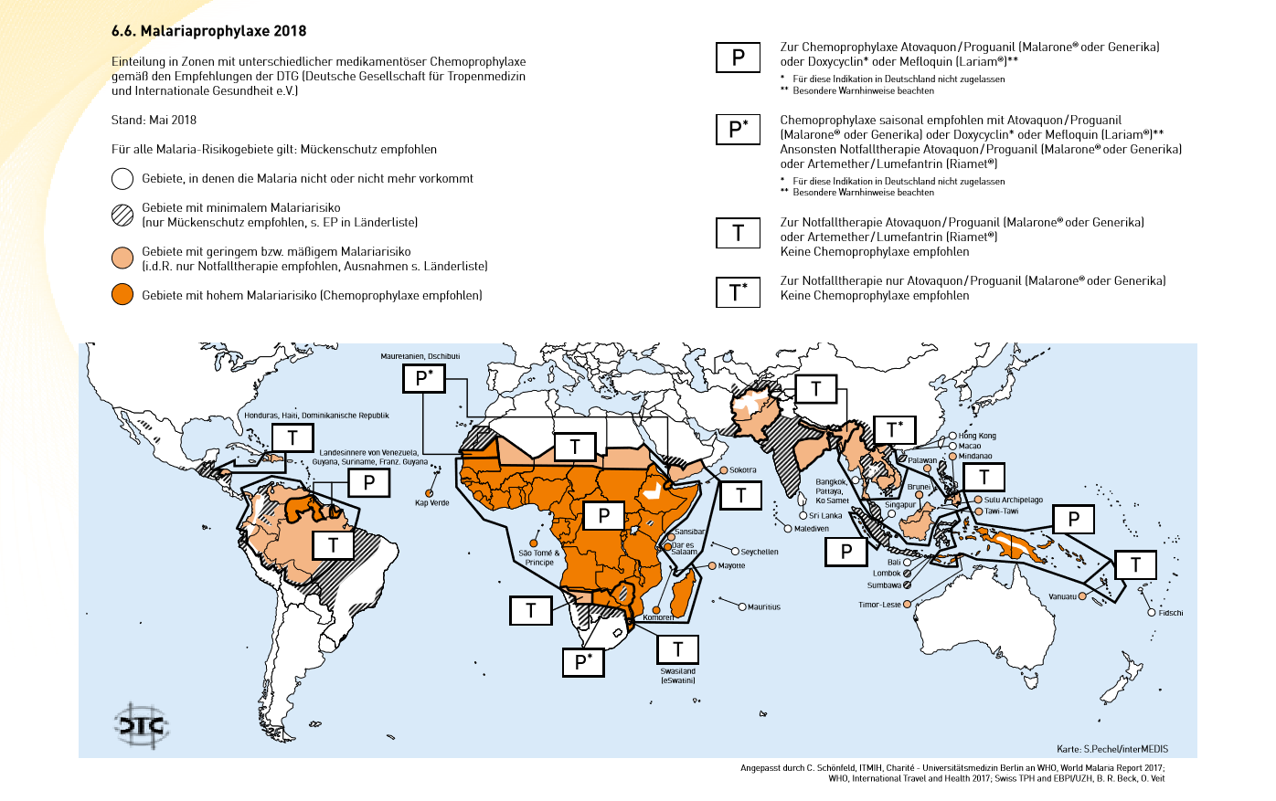 Mitführen eines Malariamedikamentes und Einnahme bei Fieber +/- Schüttelfrost bei fehlender ärztlicher Versorgung = Notfallmedikation;